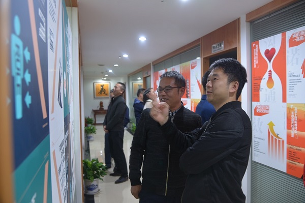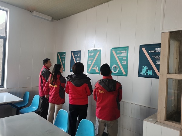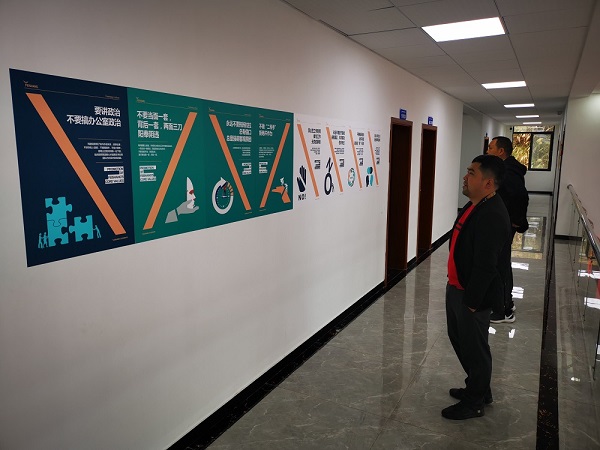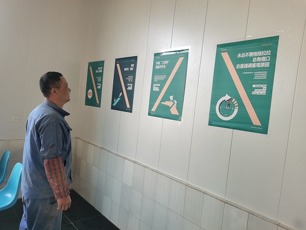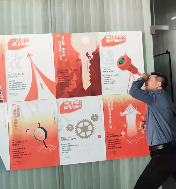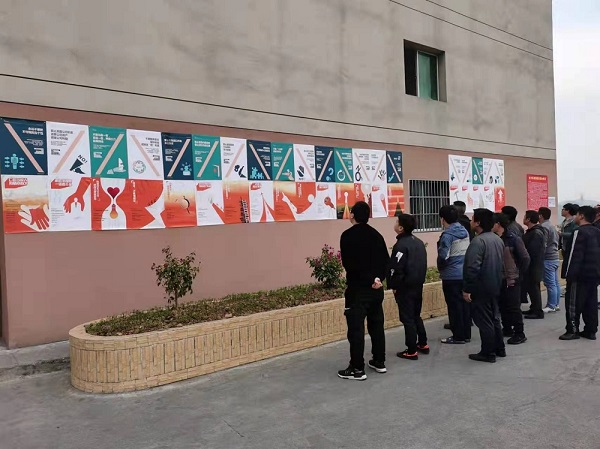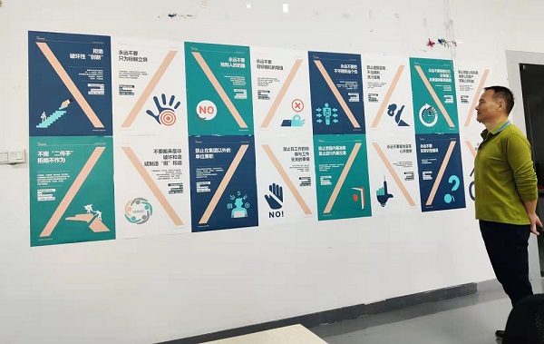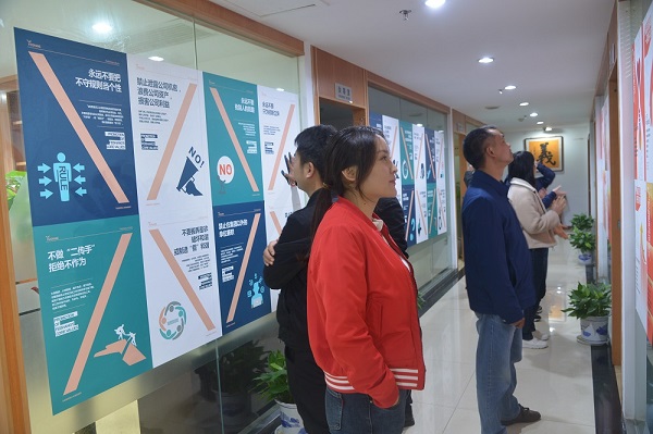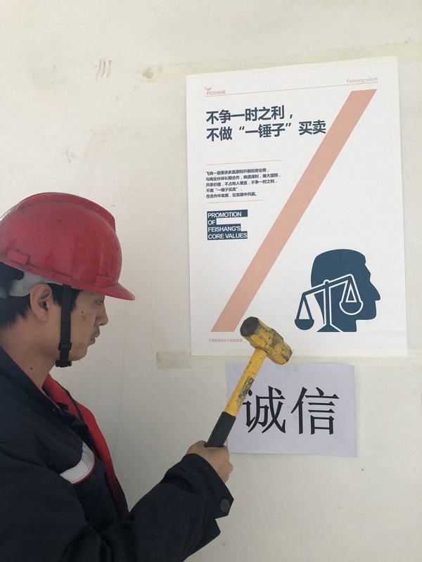 自九月份發(fā)布《飛尚集團核心價值觀行為指引倡行20條/禁行20條》后,集團人力資源部同時印制創(chuàng)意海報郵寄到各成員企業(yè),各成員企業(yè)根據(jù)自身情況,在公司會議室、員工食堂、生產(chǎn)廠區(qū)、生活區(qū)等墻面開闊處張貼宣傳。無論是從北方的內(nèi)蒙古到南方的廣東,從西邊的貴州到東邊的江蘇,還是中部的安徽、江西等地,廣大飛尚員工紛紛駐足留影,飛尚網(wǎng)紅打卡點儼然一道亮麗的風(fēng)景線。