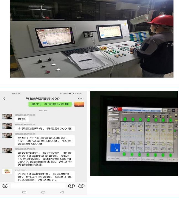 氣墊爐設備的調試。氣墊爐設備在副總經理宣夕文的整體協調指揮下,目前調試工作正在緊張有序地進行中。4月21日,爐區溫度已達到正常生產的工藝溫度,預計本月底前將進行帶料調試,爐區各參數優化工作將通過遠程協助完成。